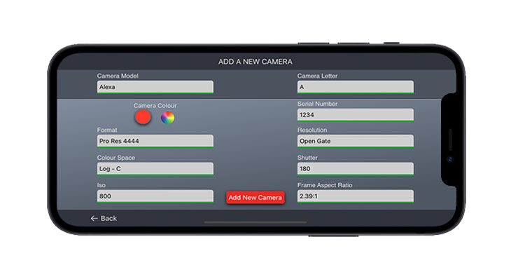 Add Cameras to your project to keep track of camera types, letters, serial numbers and other information. Easily see which camera IDs have already been used. No more confusion in what camera IDs can be used for 2nd or splinter units. Set a colour for the camera which allows for easy identification on reports and for logging shots. Make a mistake or need to change something, no porblem. Cameras can be easily edited. Associate a camera team with a particular camera for keeping track of who is working on which camera.