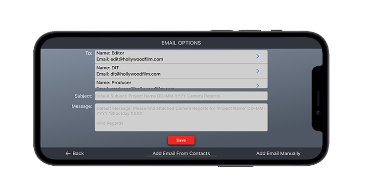 Save and edit your distribution list directly in the app for quick sending. Add email contacts from your device or manually and Camera Sheets will compose the email, subject and attach the selected reports. Email recipients are filled in from the distribution list so all you need to do is hit send! Instead of composing an email, adding all the addresses and attaching the report manually every day Camera Sheets can take care of that for you, saving you time at the end of the day! You might just be able to make that after wrap drink after all!
